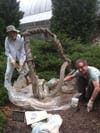 The artists created Jaws out of Oriental bittersweet in 2009. On the day that I met them, they were treating the sculpture with a type of wood preservative with the intent of preserving the piece for future generations. Given the uniqueness of their artistic medium, Goldstein noted that they weren’t sure if the treatment would work. However, they remained hopeful.