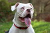 The moment you see Hanny, you can’t help but smile. He’s a goofy, happy dog who greets you with warm enthusiasm and loves every person he meets. Hanny is a young, strong, and active American Bulldog who is around 3 years old and weighs in at a muscular 70lbs. He’s a handsome boy too, with a perfect snow white coat and striking blue eyes. His favorite things in life are being with his people, playing tug and fetch, and American cheese.