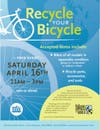From 11 a.m. to 3 p.m., Bikes for the World will be accepting bicycles in repairable condition, as well as bicycle parts and accessories. Missing parts are fine, excessive rust is not.