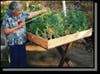 He settled on a raised bed that was 4’ x 4’. Of course you can make your beds any width and length you want to suit your particular situation, but he suggests it be no wider than 4’ and that it be no longer than 16’ in length as you will tend to try to hop over to the other side instead of walking around it if it’s TOO long. The photos show one of the reasons Mel wants the beds kept 4’ wide or less—it’s easy for almost anyone to comfortably reach in and work regardless of their stature.