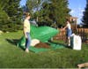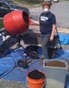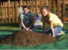 After putting a “scoop” of each of the three ingredients onto the tarp, you will want to very gently mist everything with a garden hose—just enough to knock down the dust a bit, do NOT wet it too much or it will be too heavy. Next you and a friend each take a corner of the tarp and “roll” front-to-back then side-to-side until it’s thoroughly mixed. (See the photos)