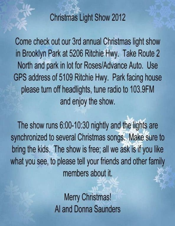 Check out a local, homemade Christmas Light Show right here in Brooklyn Park, MD. Read on for more details.