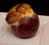 After about 30-40 minutes the marshmallow should be nicely charred. The skin of the apple should be wrinkled and maybe even torn a bit. That's OK. Cooked apples aren't the prettiest. Use tongs to get the apple off of the grill and bring it inside. Let it cool off for about 5 minutes.