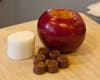 Take the Rolo candies and shove them into the apple. Press them down hard! Don't leave any gaps. Take the marshmallow and stuff it into the top like a cork on a wine bottle. Make sure it gets down in there really good.
