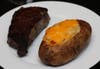 At this time you can either refrigerate your potatoes for later baking or proceed to a 325 degree oven. The potatoes can sit in a 325 degree oven for quite a long time without burning. The only goal here is to reheat the potato and melt the cheese. Keep an eye on your steaks (or whatever else you are grilling) and when you have maybe 5-10 minutes left kick up the oven to about 450 degrees to make sure the cheese is melted on top. Serve along with your grilled masterpiece!