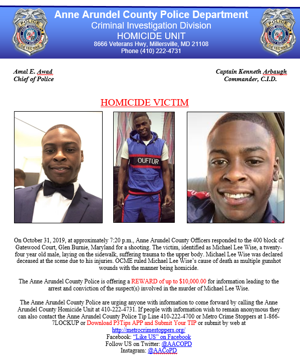 Officers resurfaced a Halloween homicide. Police offered a $10,000 reward for tips on the two-year anniversary of the Glen Burnie shooting.