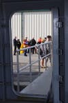 Before the gray boat with members of the 203rd Transportation Detachment left the Baltimore area during the "Sail Away" departure, Maryland Gov. Martin O'Malley and high-ranking military officials gathered with others inside a building on the installation to hold a deployment ceremony.