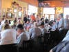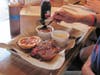 The veterans enjoyed barbecue while some were interviewed by the media. One of the veteran's granddaughters performed the national anthem, which is heard at the restaurant each day at noon.