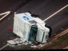 »A postal truck overturned in Bowie Thursday, critically injuring the driver. Photos from WNEW TV