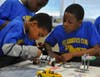 On the robotics portion of the competition, the students scored 108 points, and the winning score was 144. However, this was victory enough for the students because George Boyce, their instructor, promised them pizza if they could reach 100 points.