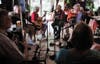 “What chord are we playing in?” is heard within the circle of 11 musicians at the jam session in the Wednesday.