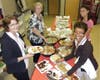 Teachers and staff began filtering into the Teachers' Lounge shortly after 10:30 a.m., commenting on the table decorations and the aromatic smells emanating from the meatballs.