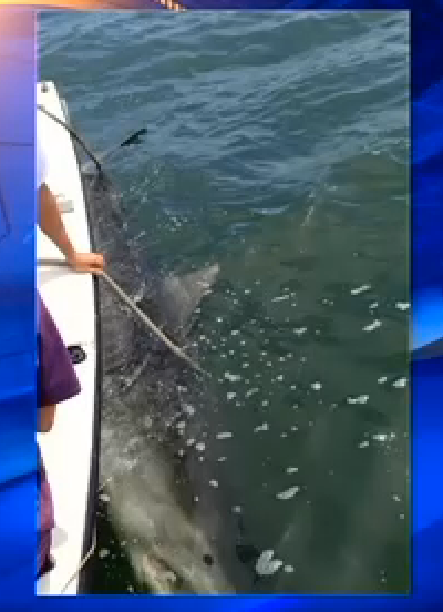 »Earlier footage of Septima the shark being tagged off the shore of South Carolina. Credit: Screenshot from FOX DC