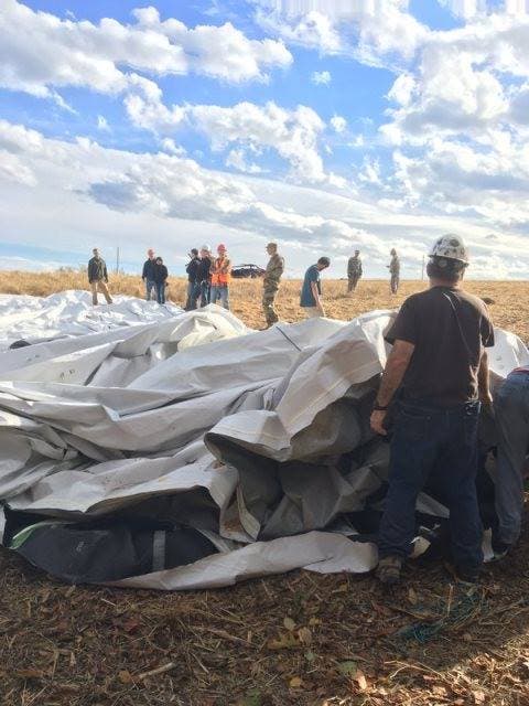 Pictured, blimp recovery efforts in Pennsylvania. Photo Credit: NORAD.