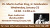 The Dr. Martin Luther King Jr. celebration will be at 10:30 a.m. on Wednesday, Jan. 21, at Aberdeen Proving Ground, Myer Auditorium, 6000 Combat Drive.
