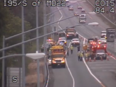 The two-vehicle crash occurred at approximately 9:15 a.m. on I-95 north at the exit for MD 22, state transportation officials reported.