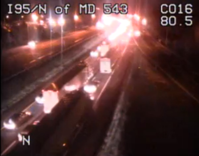 The two-vehicle collision was reported at 7:19 p.m. on I-95 north past the exit for MD 543, state transportation officials reported. Before 9 p.m., two of three northbound lanes remained closed for cleanup, according to the Coordinated Highways Action Response Team (CHART).