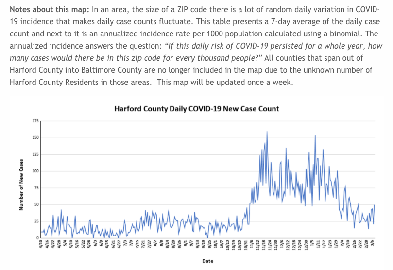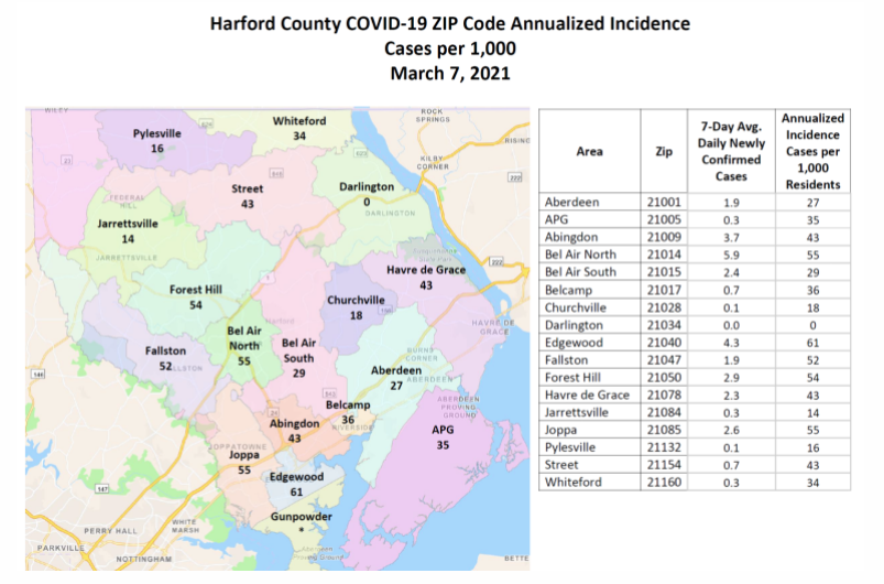 Here is the latest ZIP code data from the Harford County Health Department, which is updated every Monday: