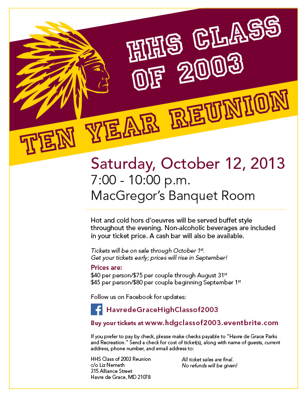 Questions? Email hhsreunion03@yahoo.com or jpetty16@gmail.com.