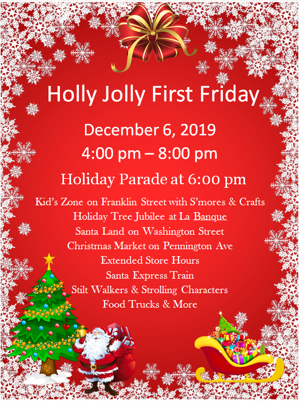 Here's what is on the "Holly Jolly First Friday" agenda: