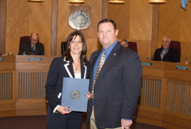 Pictured, April Ishak with Mayor Bill Martin at the Jan. 3 city council meeting. Photo Credit: City of Havre de Grace.