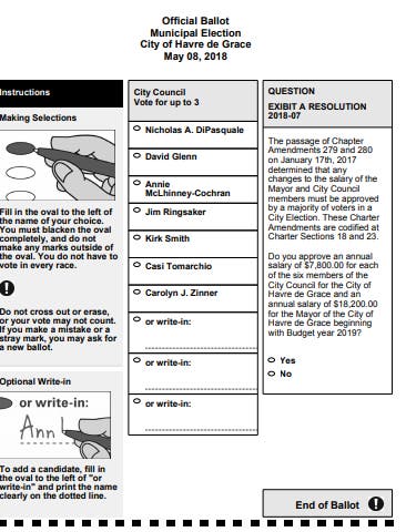 Sample ballot via city of Havre de Grace. Patch file photo.