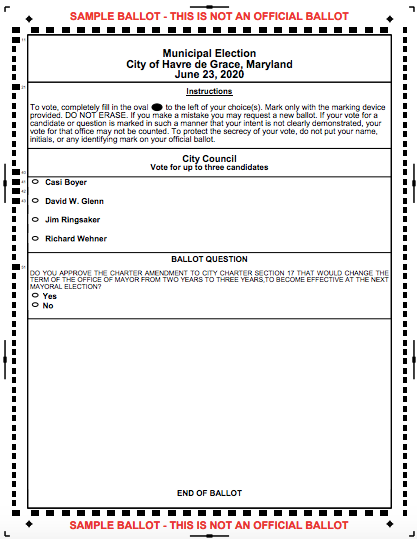 HAVRE DE GRACE, MD — The municipal election in Havre de Grace is slated for Tuesday, June 23. Normally held the first Tuesday in May, the annual event was postponed due to the coronavirus pandemic.