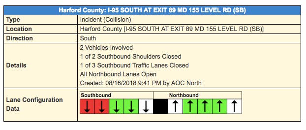 Traffic cameras showed that vehicles were moving around the exit for MD 155 but the backups were on and just south of the Tydings Bridge on Interstate 95 south.