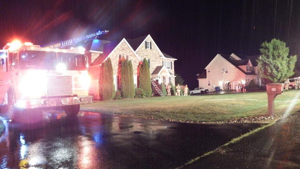 Lightning hit a roof in the unit block of Chads Way at approximately 1:30 a.m. Monday, the fire marshal reported.