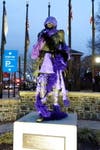 Days after Lafayette's purple and black feather boa and purple mask were installed in mid-January, however, the work was undone.
