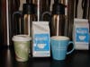 The coffee house will serve hot chocolate, coffee and tea as well as juice and sodas. Available for purchase are coffee mugs and bags of coffee beans. The mugs are $8 and the 8 ounce bags of beans are $8. The mugs and beans are available for purchase anytime.