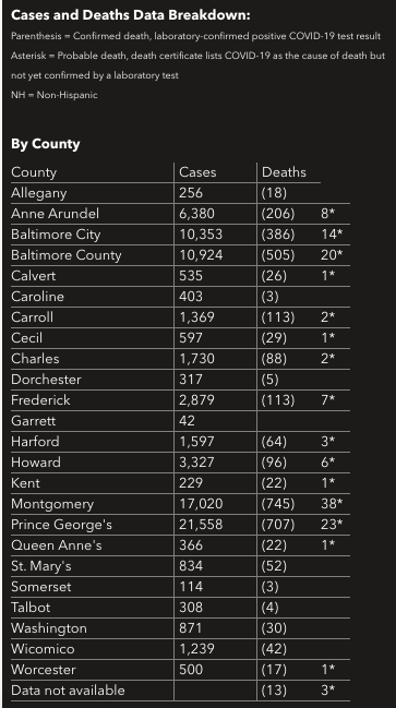 Table by Patch. Source: Maryland Department of Health.