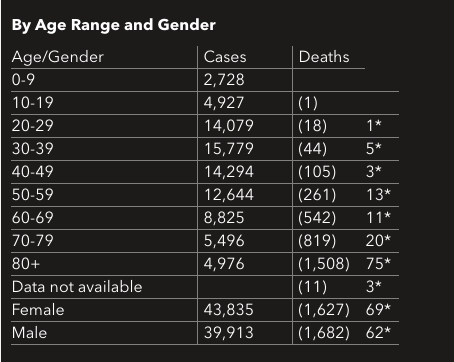 Maryland Coronavirus Cases By Age And GenderCourtesy of Maryland Department of Health.