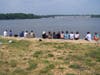 They looked out over the water and sat on the bulkhead just north of on the shore of the Susquehanna River.