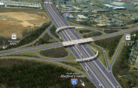 Spanning approximately 10 miles, two new express toll lanes in each direction of I-95 will run alongside the existing four general-purpose (non-tolled) lanes. The express lanes run from I-895 to just north of MD Route 43.