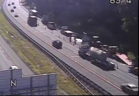 At 6:30 a.m., vehicles were able to use the two left lanes, while the tractor-trailer was moved to the right, according to the transportation authority.