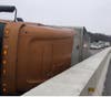 A tractor trailer overturned on the Tydings Bridge Thursday afternoon, leading to detours for more than two hours as crews worked to remove it amid high winds. As of 3:30 p.m., all lanes of Interstate 95 on the bridge had reopened.