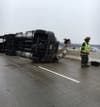 According to one broadcaster, they were not able to get the vehicle up because of the wind. Jim Russ of WBAL Radio reported after 2:30 p.m. that crews had still not righted the tractor trailer and instead pulled it on its side to clear the crash from the bridge.