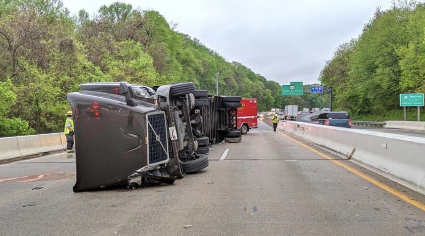 A tractor-trailer flipped on its side on Interstate 95 north approaching the Tydings Bridge Friday morning in a multi-vehicle crash near the Harford-Cecil county line. All lanes were blocked on I-95 north during the response, and traffic was detoured onto MD 155.