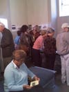 Greeting visitors at the entrance of the exhibit reception Kathy Aspden, the group's 55-year-old cataloger. Aspden provided information about the building and its neighboring facilities and was open to questions anyone might have. When asked what she enjoyed the most about working at the HSBC, she said, "I like best getting people excited about their connection to society and the past, making people feel like they belong and reminding them that they're Baltimoreans and this is where they come from."
