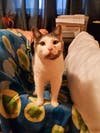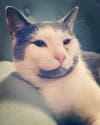 Does anyone recognize this cat? She had been wondering our woods since November & we took her out of the cold as she had been getting skinnier and developed a watery eye. She has a pink collar on her, no microchip.