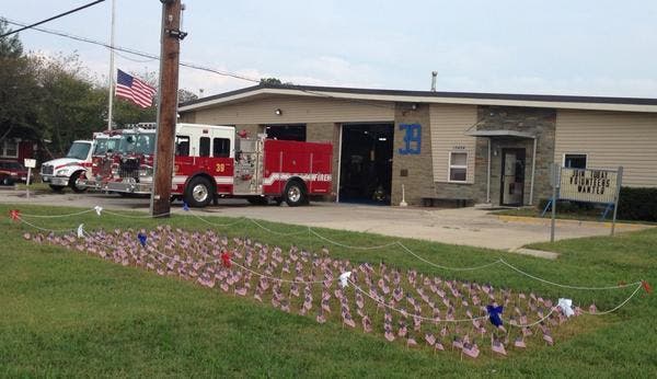 Photo Credit: Prince Georgeโs County Fire Chief Marc Bashoor posted this photo on Twitter of the 343 flags at the Bowie Volunteer Fire Department.