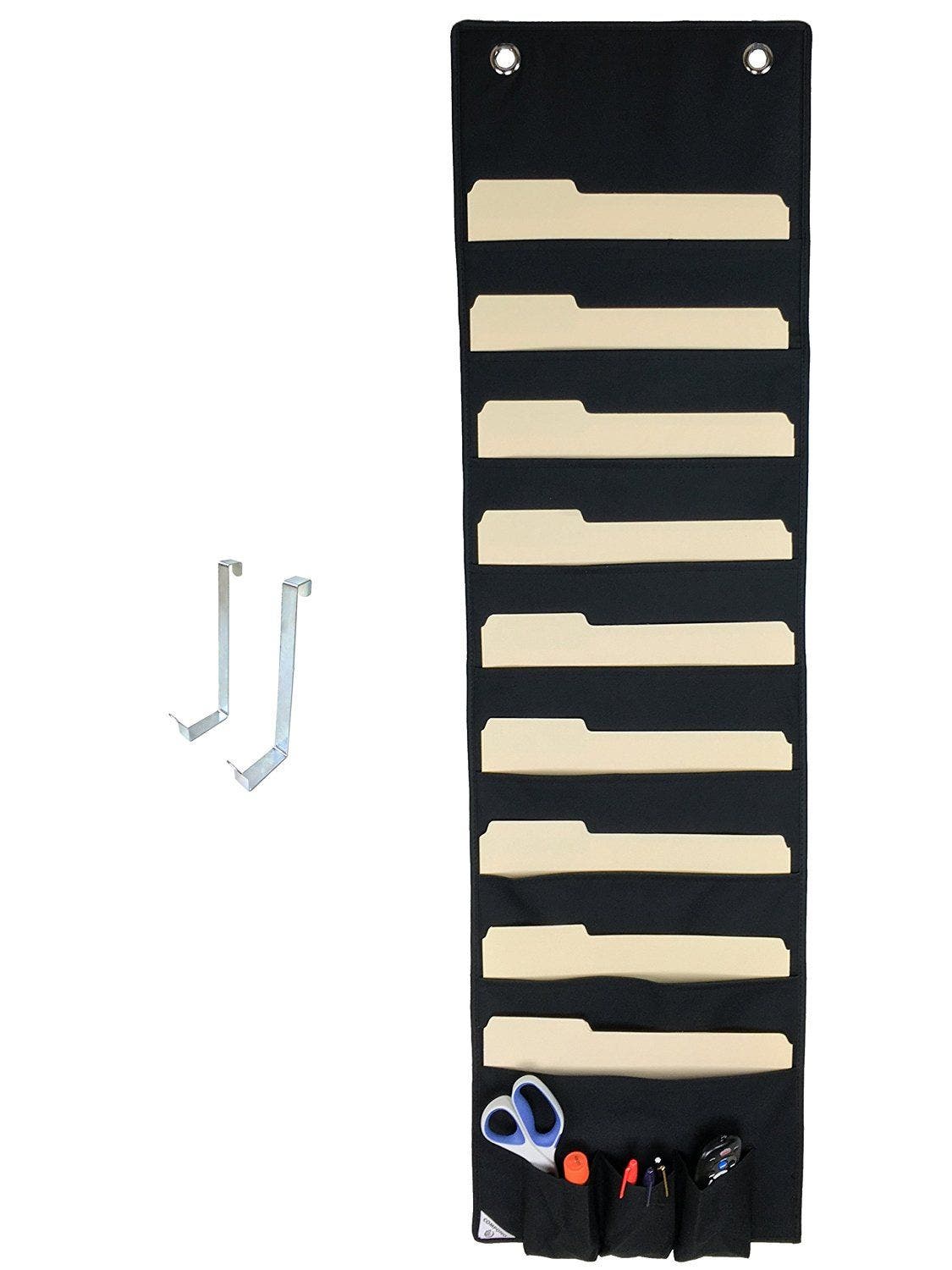 Get organized and save money — how does that sound? Right now, this hanging file folder organizer is majorly marked down, which means nine large pockets and three small ones can be yours for less than 20 bucks.
