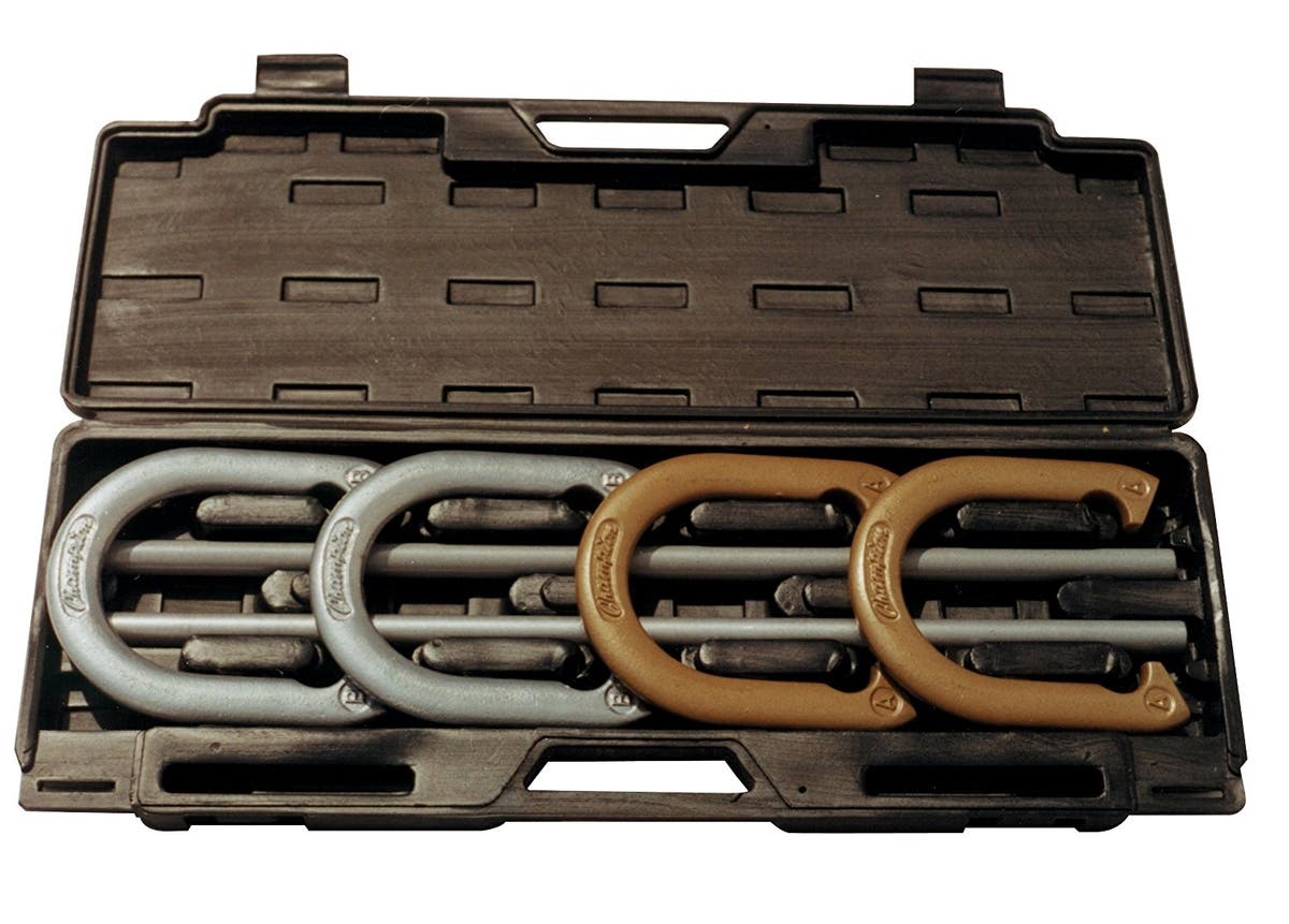 Bring the whole family together in the backyard with a classic game of horseshoes. This set comes with four solid steel shoes that are made to last, two solid steel stakes that are easy to drive into the ground, a convenient carrying case and a set of rules.
