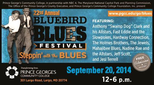 Prince George's Community College will host children's activities, food and craft vendors at the free weekend blues music fest.