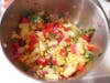 - Meanwhile, combine the remaining salt, pineapple, corn, bell pepper, onion, basil, avocado and sugar (with the optional jalapeno) in a large bowl. Mix thoroughly.