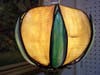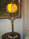 She said that this lamp was formerly a kerosene lamp, and then, it became transformed to use electricity. It even has a candlestick as a base and slag glass, used to make stained glass, for the top part. Sanders said that the top of the lamp was made separately, and someone must have assembled it at a later time.