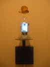 "Displaced by Approximately .9 Miles and 361 Feet," a shadowbox projection of the statue of the Virgin Mary echoes the sentiment.