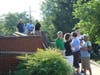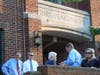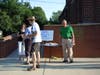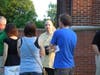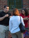 Candidate flanked by Councilmember Lydia Sullivan greeted voters as they made their way up to the town hall. Candidates and , surrounded by