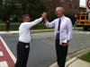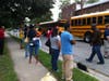 Arriving students and parents were directed to the Laurel Armory – Anderson & Murphy Community Center, just across the street from the school. There they were greeted by teachers, staff and PGCPS officials, who directed students while answering anxious parents' questions. Aided by signs and armbands, students were quickly grouped by grades and assigned to individually-numbered buses.
